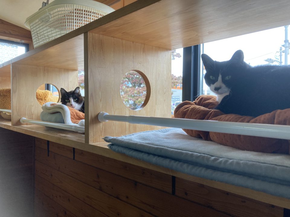 朝一番、ねこずの扉を開けると一斉に窓辺に飛び出していきました。